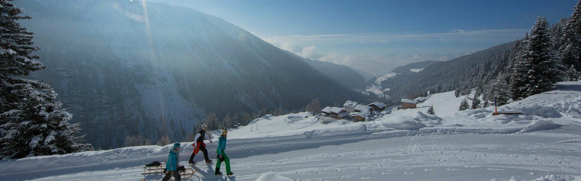 Niederthai liegt oberhalb von Umhausen, dort können Sie im Horlachtal eine wunderschöne Rodelpartie machen.